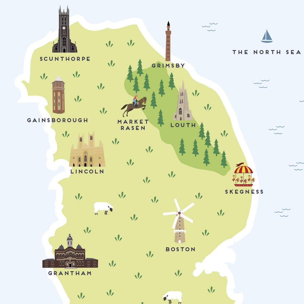 Map Of Lincolnshire Print By Pepper Pot Studios