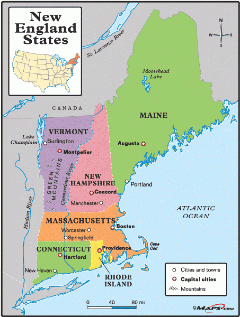 Free Printable Map Of New England States