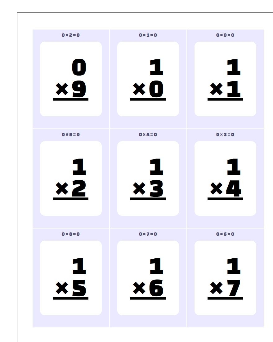 With printable multiplication flash cards 0-10, you can customize the cards to focus on specific numbers or mix them up for a more challenging practice session. This flexibility allows children to work at their own pace and gradually build their confidence in math.