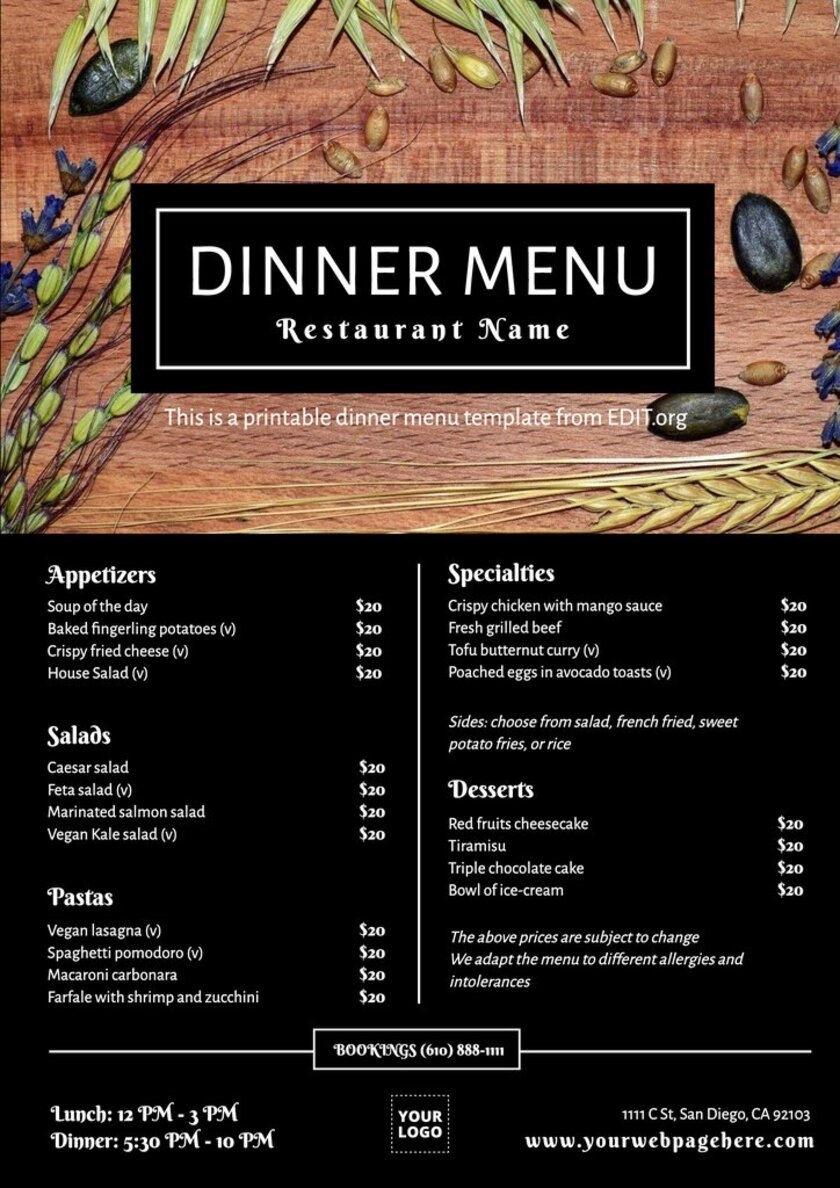 Planning a special occasion or hosting a party? Printable restaurant menus with prices can help you create a customized menu that fits your budget and preferences. You can even share the menu with your guests to ensure everyone finds something they love.