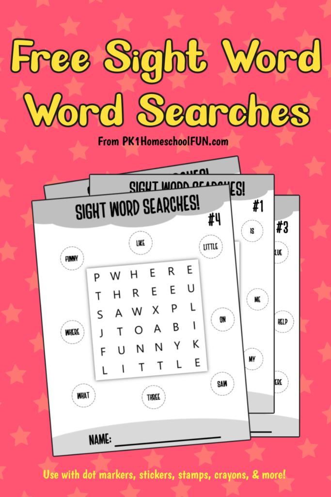 Free Printable Sight Word Word Searches PK1Kids
