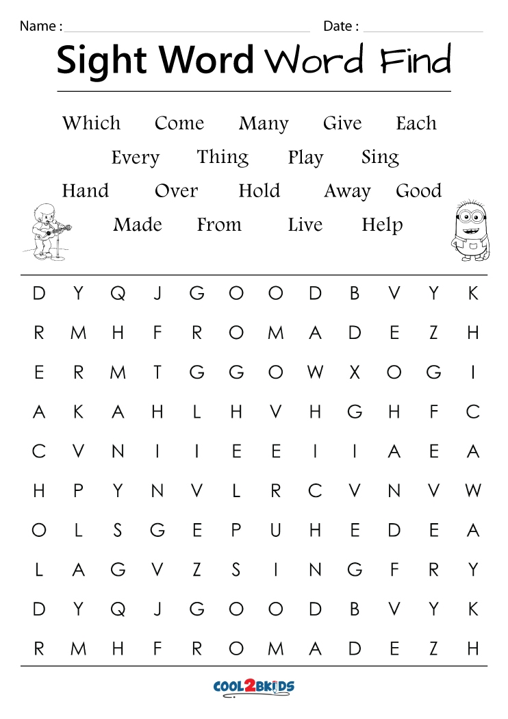 Printable Sight Word Word Search Cool2bKids