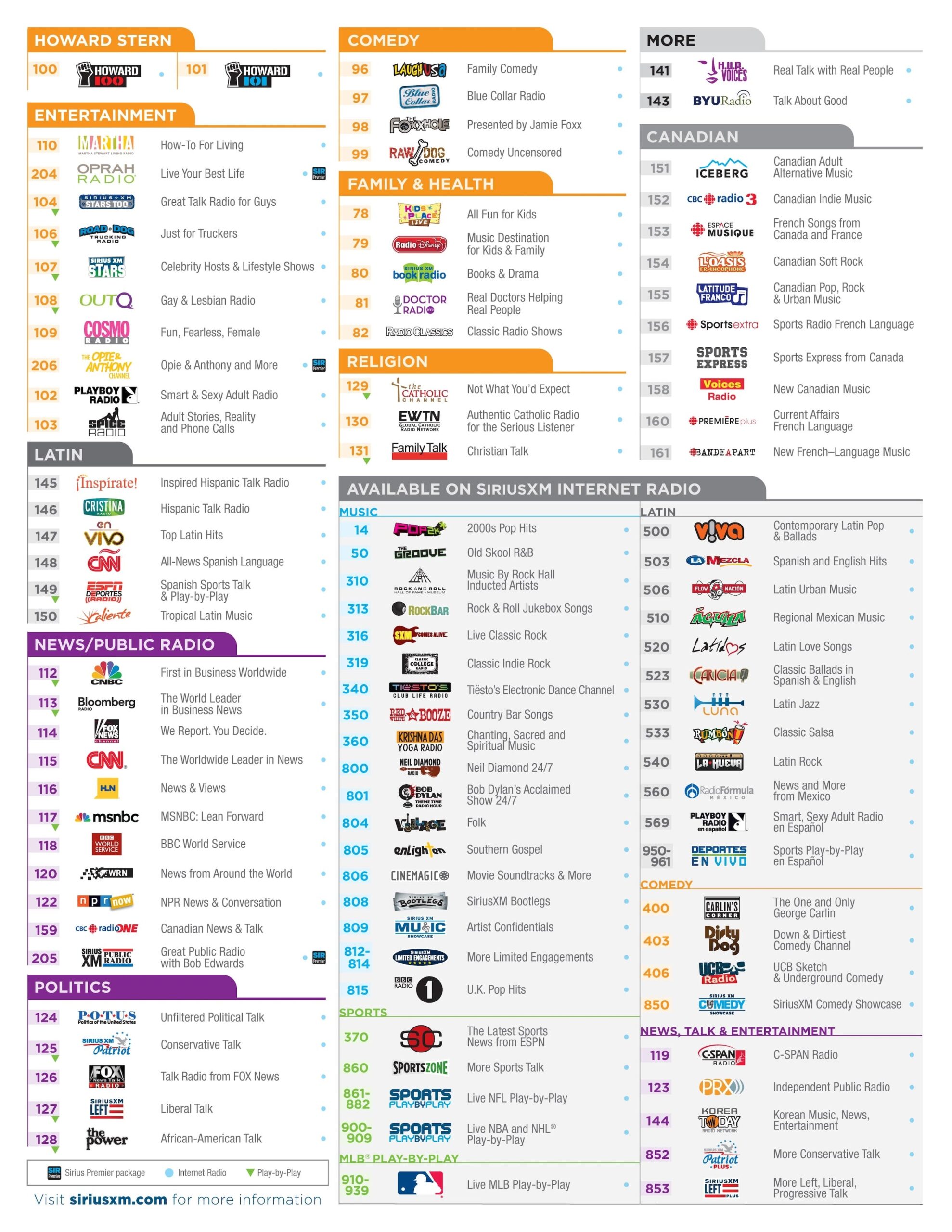 Sirius Xm Channel Lineup Printable