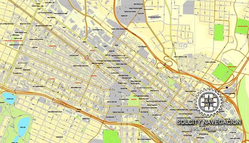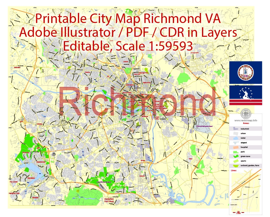 Richmond Virginia US Printable Vector Street City Plan Map Full