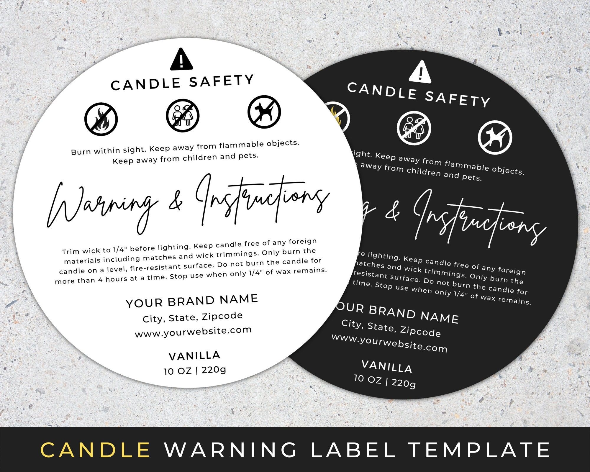 If you’re not confident in your design skills, you can also find pre-designed printable warning label templates online. Websites like Etsy and Creative Market offer a variety of options that you can purchase and download instantly. Simply input your safety information and print them out for easy application to your candles.
