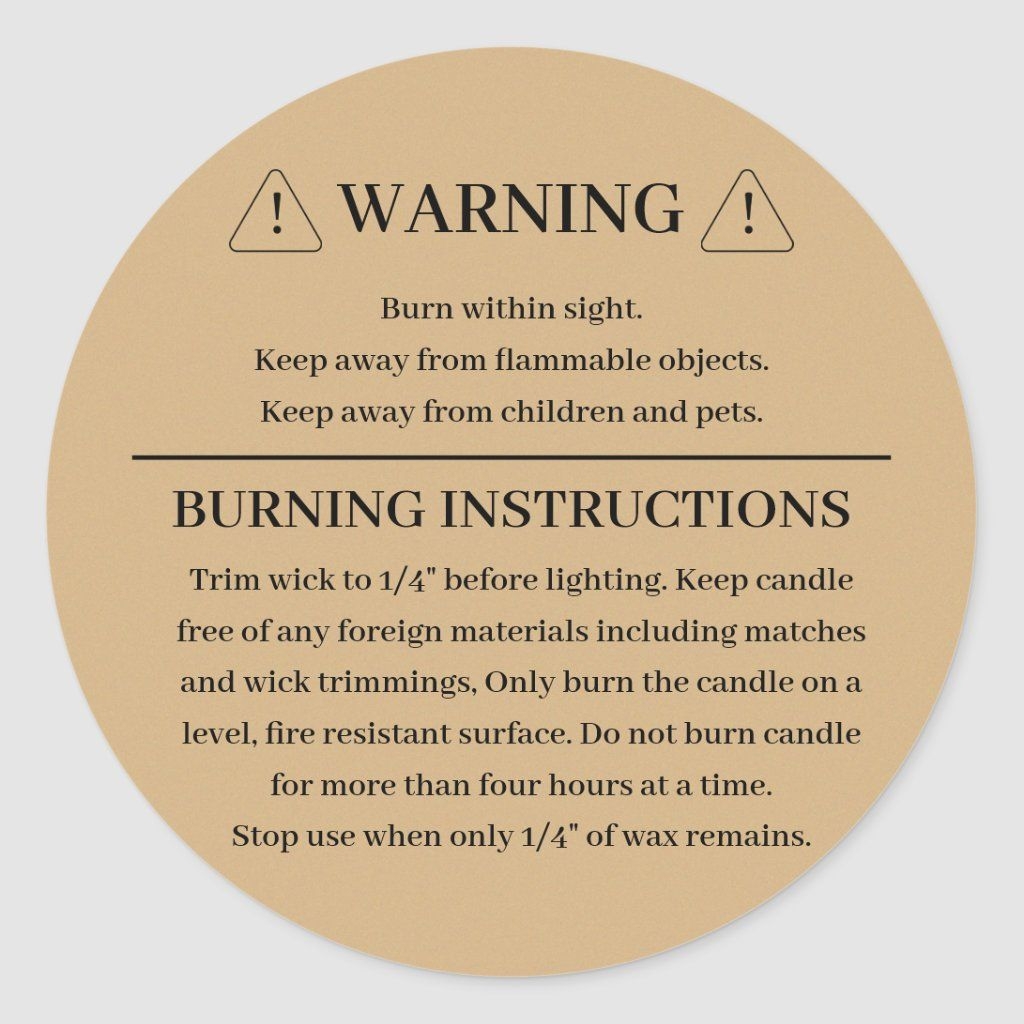 Remember, the safety of your customers should always be a top priority when creating candles. Make sure to include important information on your warning labels, such as burning instructions, potential hazards, and contact information for your business.