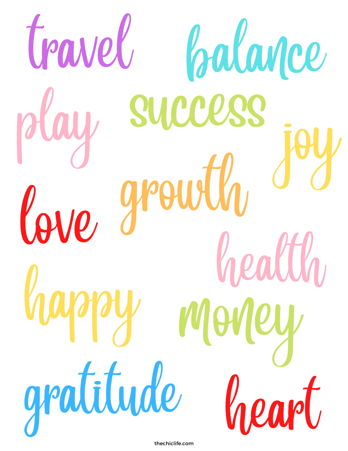 Colorful Vision Board Words Free Printable PDF The Chic Life