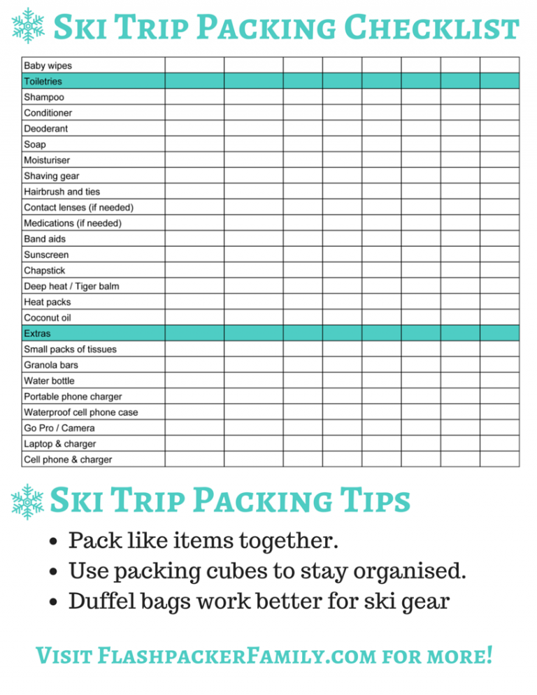 The Complete Ski Trip Packing List Printable Download Flashpacker