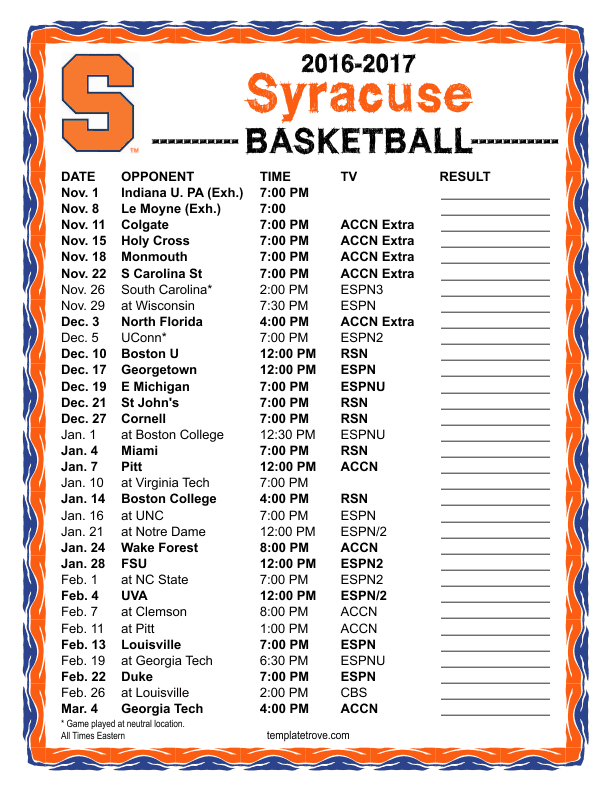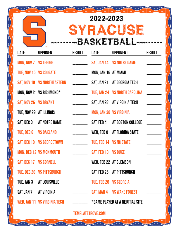 Whether you’re planning your game day watch parties or just want to stay up to date on when Syracuse will be hitting the court, having a printable schedule on hand can make things a whole lot easier.