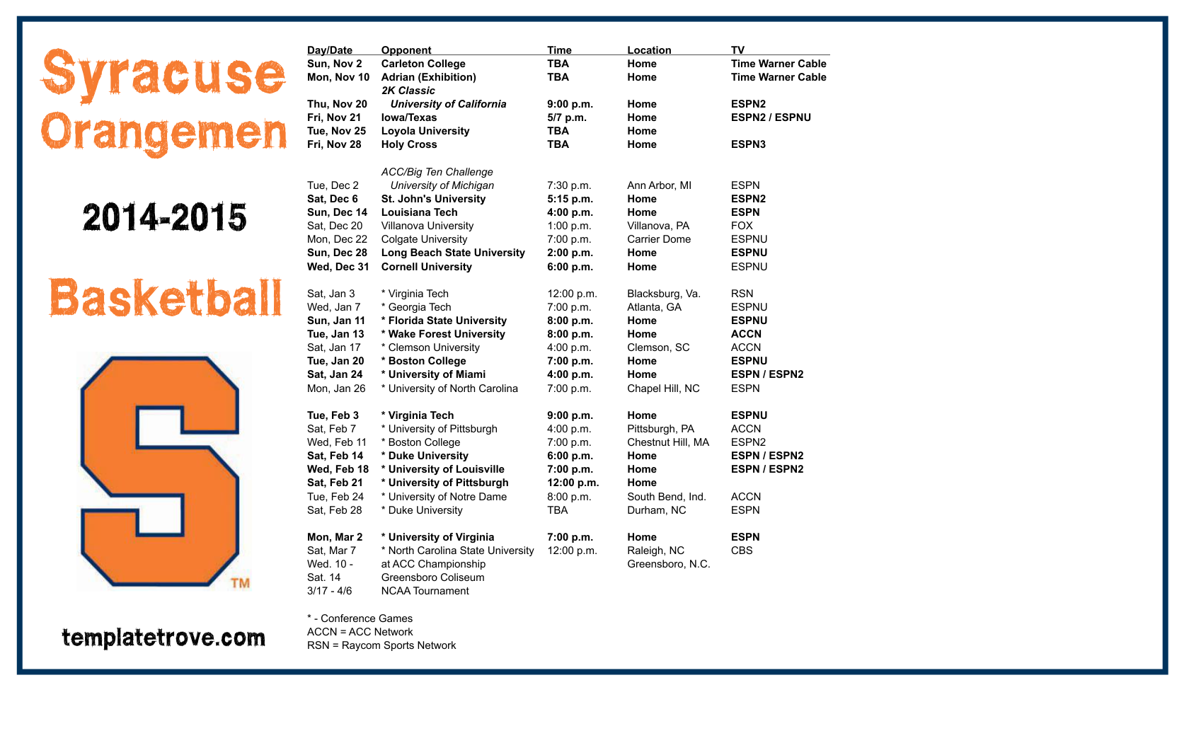 Printable Syracuse Basketball Schedule Printable Calendars AT A GLANCE
