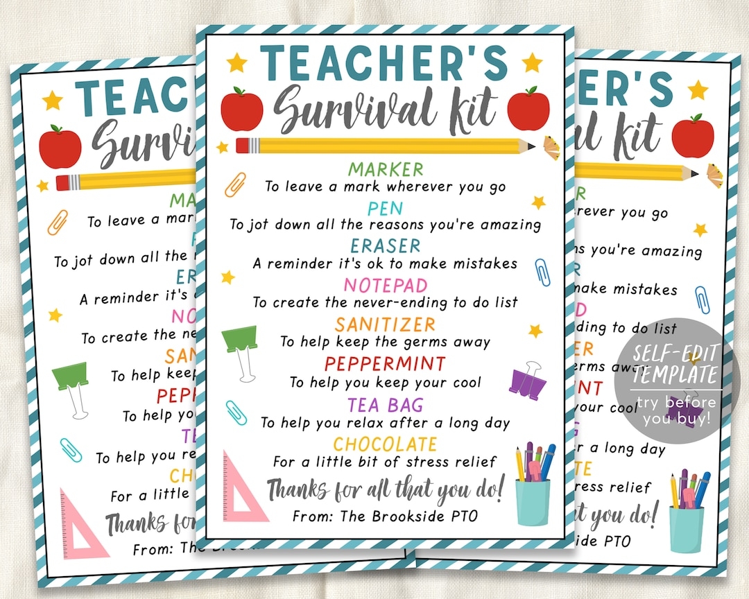 Teacher Survival Kit Editable Template Teacher Appreciation Week Thank