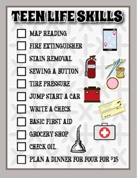 Teen Life Skills Checklist By Half Moon Designs TPT