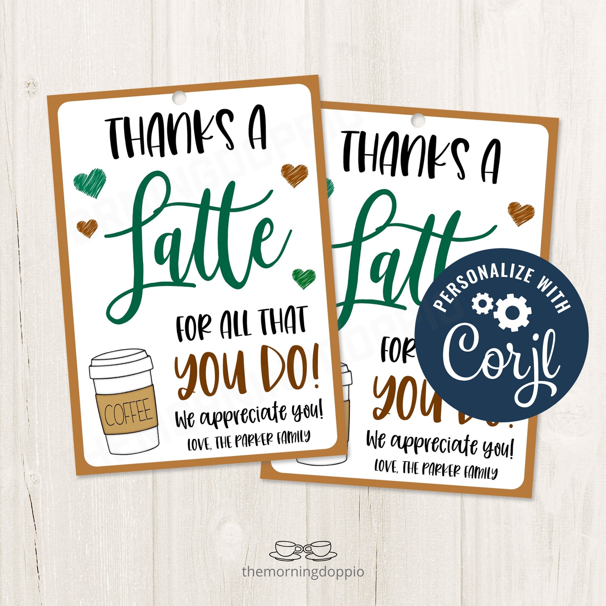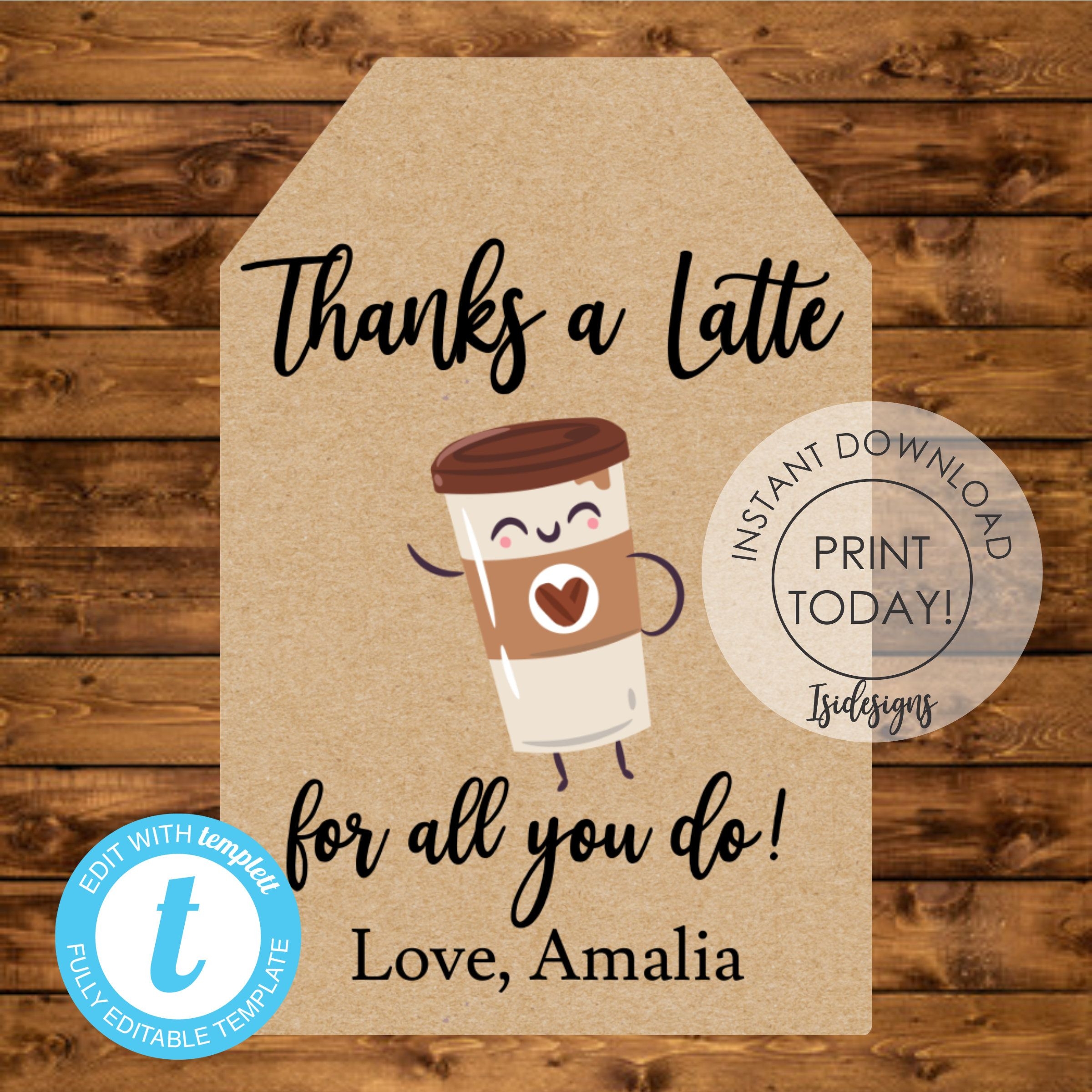 Thanks A Latte For All You Do Favor Tags Editable Kraft Latte Etsy