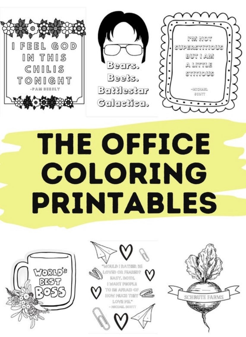 The Office Themed Coloring Sheet Printable 5 Full Size Etsy Office