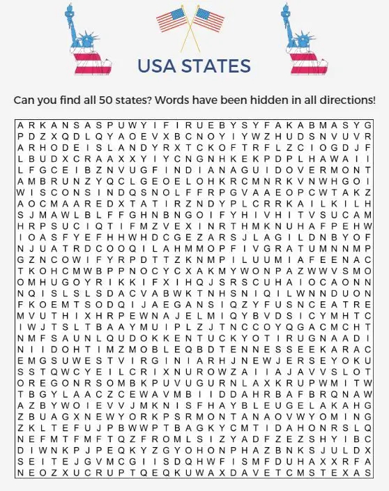 Whether you’re a student studying for a geography exam or just someone who loves puzzles, a US States Word Search Printable is sure to keep you entertained for hours on end. So grab a pencil and get ready to search for all 50 states!