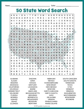 US Geography Worksheet All 50 States Word Search By Puzzles To Print
