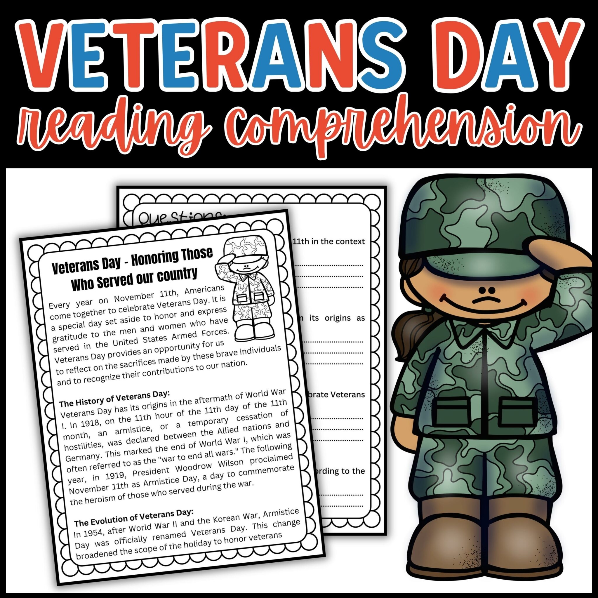 Are you looking for fun and educational activities to celebrate Veterans Day with your students? Look no further! Our Veterans Day reading comprehension printables are a great way to engage your students and teach them about the importance of honoring our veterans.