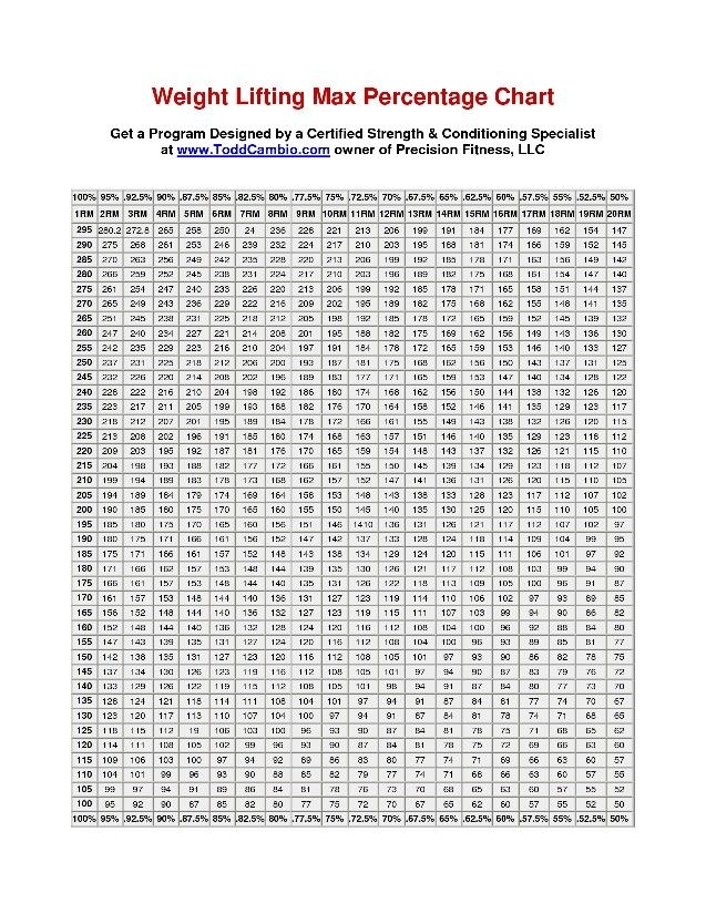 Maximize Your Workouts with a Weight Lifting Percentage Chart Printable