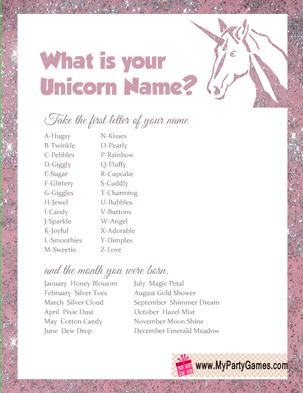 Free Printable What Is Your Unicorn Name Game