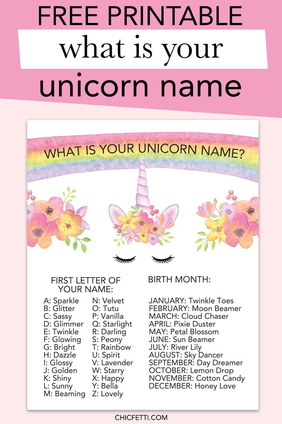What Is Your Unicorn Name Free Printable Chicfetti