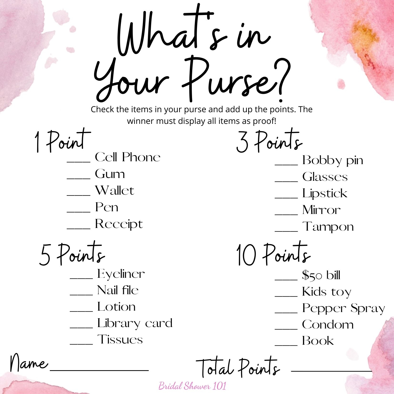 Free Printable What s In Your Purse Game For Bridal Shower Bridal